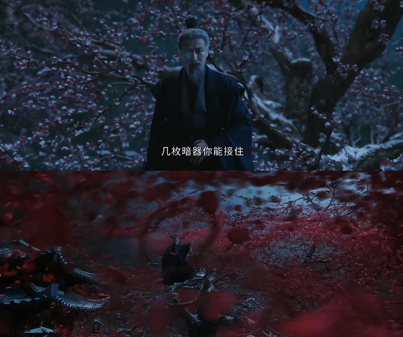 就像大家長和唐二老爺對決那一段,雪夜、涼亭、開滿花的樹,唐二老爺在亭子裏撫琴烹茶,器具看着還挺有古風古韻。