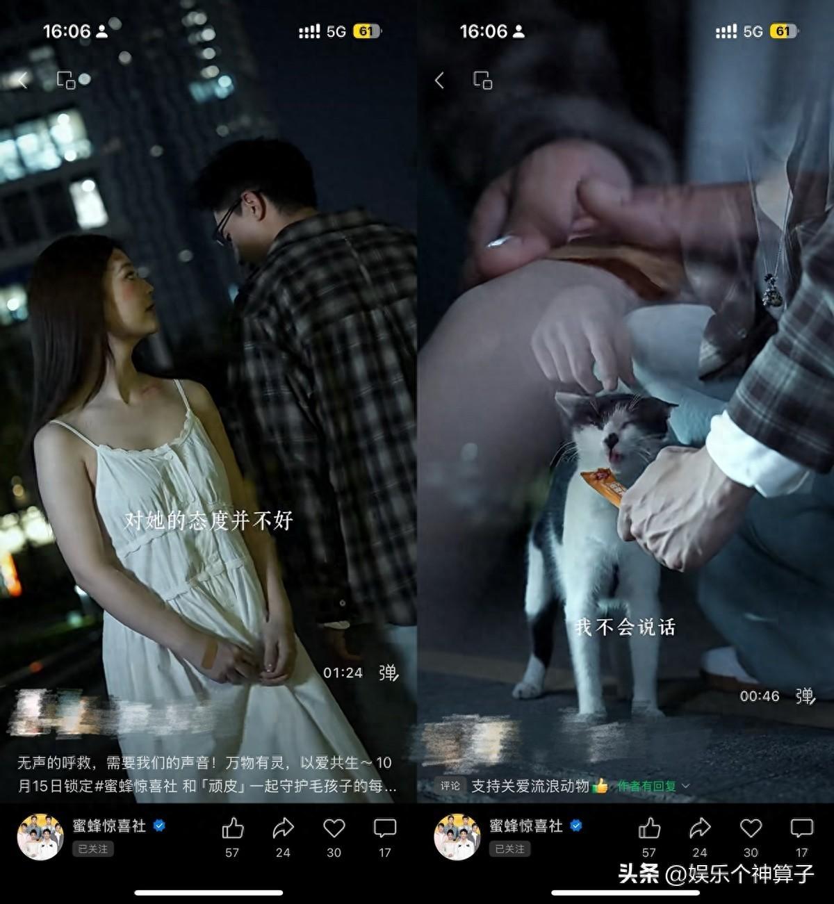 透過這則視頻,蜜蜂直播間和貓糧品牌頑皮,在暖心提醒大家在爲自己的愛寵購買食糧的時候,也給予小動物們多一些溫情和關愛。