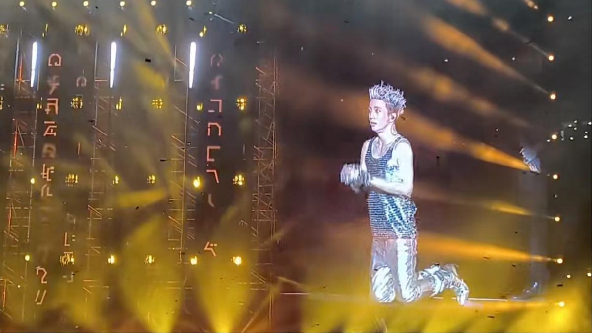 演唱會的最後,他突然雙膝下跪,哭着感謝歌迷:
