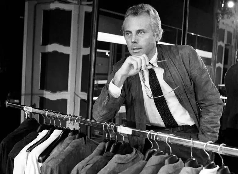 1975年首場男裝發佈會上,阿瑪尼推出了標誌性的無線條、無結構的夾克。