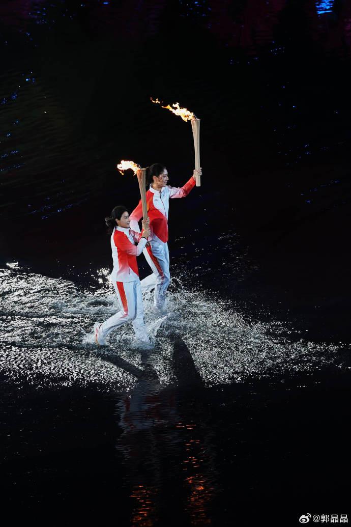 11月9日,在全運會開幕式上,郭晶晶和王欣瑜一起擔任了第三棒火炬手。