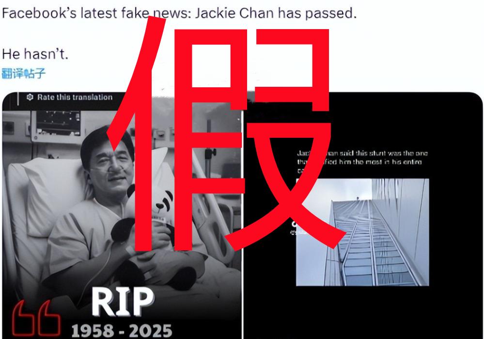 網絡查詢可以發現,有別有用心者近段時間在外網發文稱成龍因爲數十年拍戲積累的傷病併發症去世。