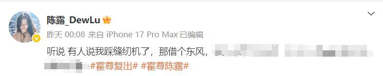 11月17日凌晨,陳露的社交賬號突然更新,她寫道“聽說,有人說我踩縫紉機了”。