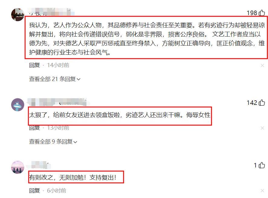 有網友說霍尊私德有虧,不尊重女性,應該繼續封殺。