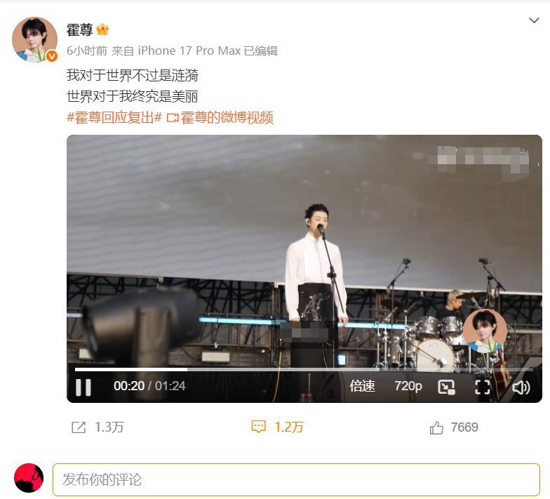 對於霍尊復出,網友熱議不斷。