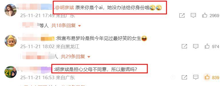 還有網友調侃胡彥斌,說他是AI,易夢玲不給他名分。