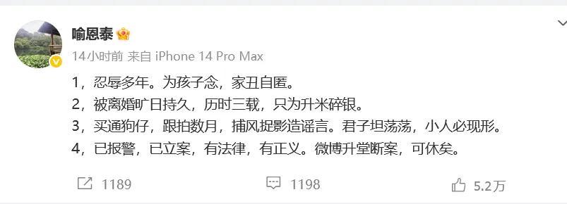 很快,喻恩泰親自下場發文,和狗仔大戰三百回合。