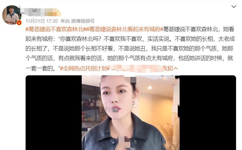 與對章子怡的認可相比,對於森林北,葛薈婕沒有什麼好話。