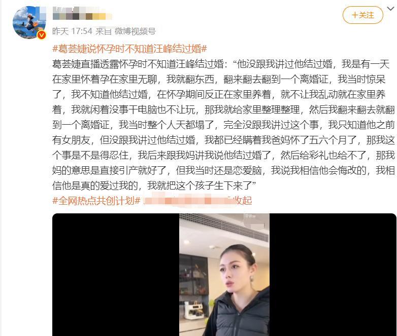 不過葛薈婕那時候很戀愛腦,相信汪峯會悔改,她說她相信汪峯是真的愛過她,所以就把孩子生下來了。