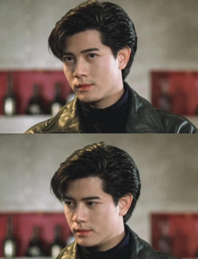 天王穿着修身夾克,髮型利落精神,眼神裏還帶着港風明星的颯爽,說是剛從片場收工都毫不違和;