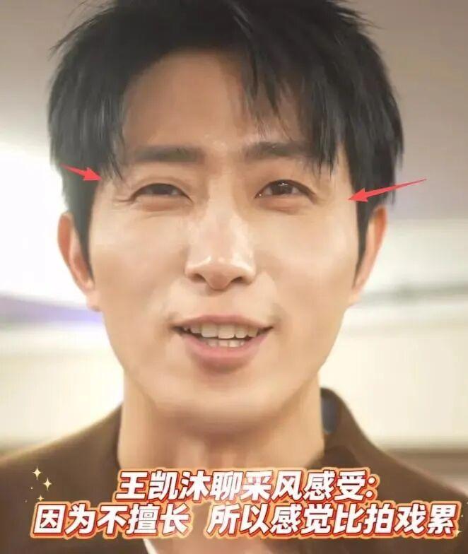 “霸總專業戶”王凱沐更實在,戲裏雷厲風行,戲外靦腆得不敢吆喝賣東西,鏡頭拉近了全是疲憊,眼角細紋比37歲的曹俊還顯眼。