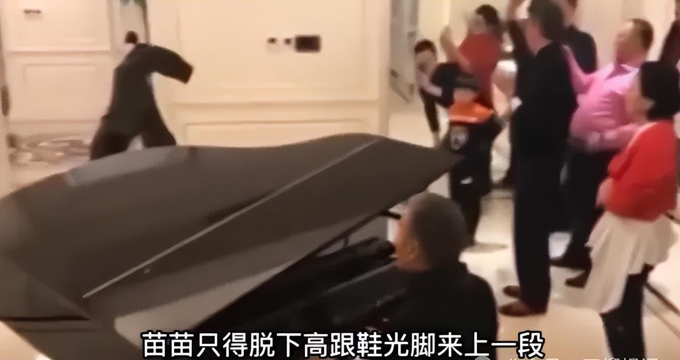 爲了不掃興、不讓大佬們難堪,苗苗心一橫,脫了高跟鞋,光着腳丫子就在那兒跳了一段 。