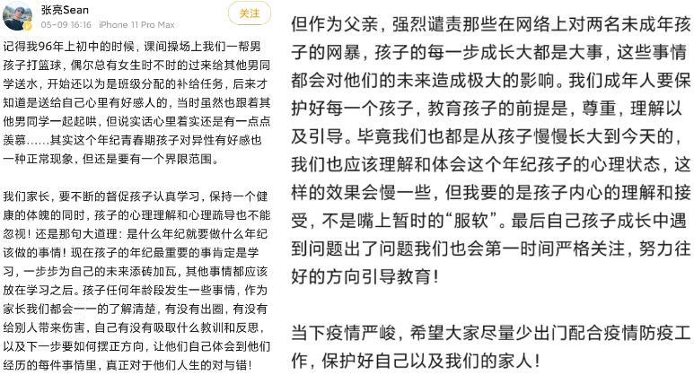 對於張亮的回應,大部分網友都表示理解,對於未成年的孩子的確需要進行正確的引導,於是天天疑似早戀的風波就這樣平息了。