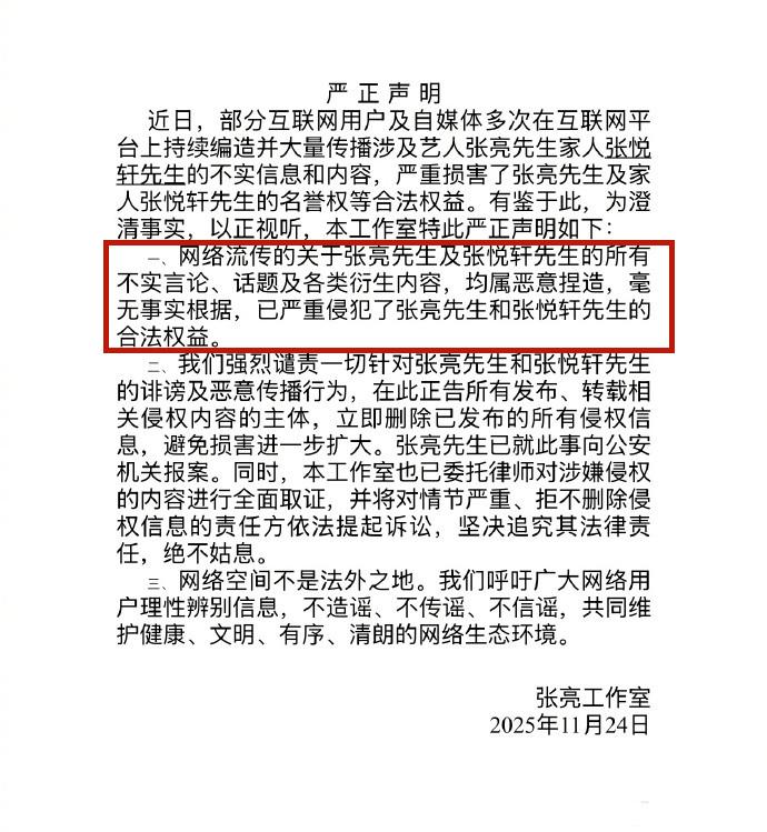 從該聲明中可知,網傳有關張亮和天天的內容屬於惡意捏造,毫無事實根據,嚴重侵犯了張亮和天天的合法權益。