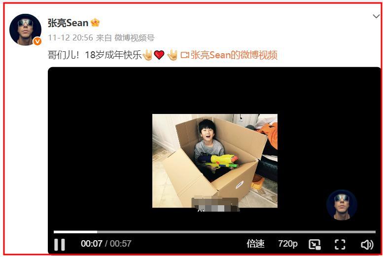 張亮不僅轉發了天天慶生的動態,還特意發佈了一條視頻爲兒子慶生。