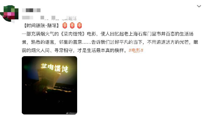 上半年帶爸媽去看《戲臺》,倆人看完一路嘮嘮叨叨興奮得不行。這次滬語電影《菜肉餛飩》上映,我二話不說又把他們拉進了電影院——銀幕前爸媽跟着劇情咧嘴笑,看到動情的地方,我媽直接紅了眼眶,我爸那倔老頭也悄悄抹了下眼角。坐在他們旁邊,我心裏真的又暖又感慨:真的太好了,咱爸媽能看的、愛看的電影,終於多起來了!