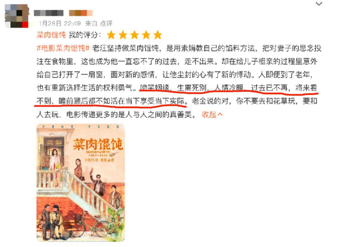 所以啊!如果你們家也是久沒陪父母坐在影院裏看電影了?聽我的,真該帶他們去看看這部《菜肉餛飩》!