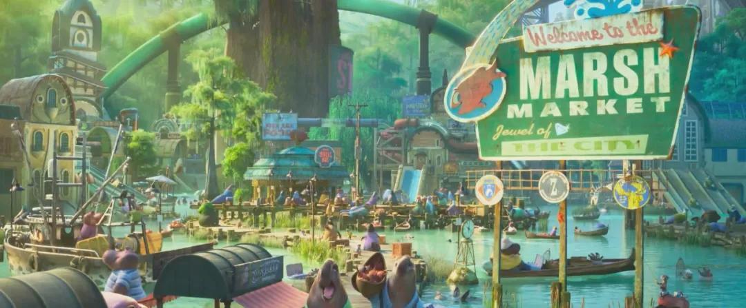 第一部我們已知動物城有四大版塊,這一部中解鎖了動物城新版圖溼地市場。