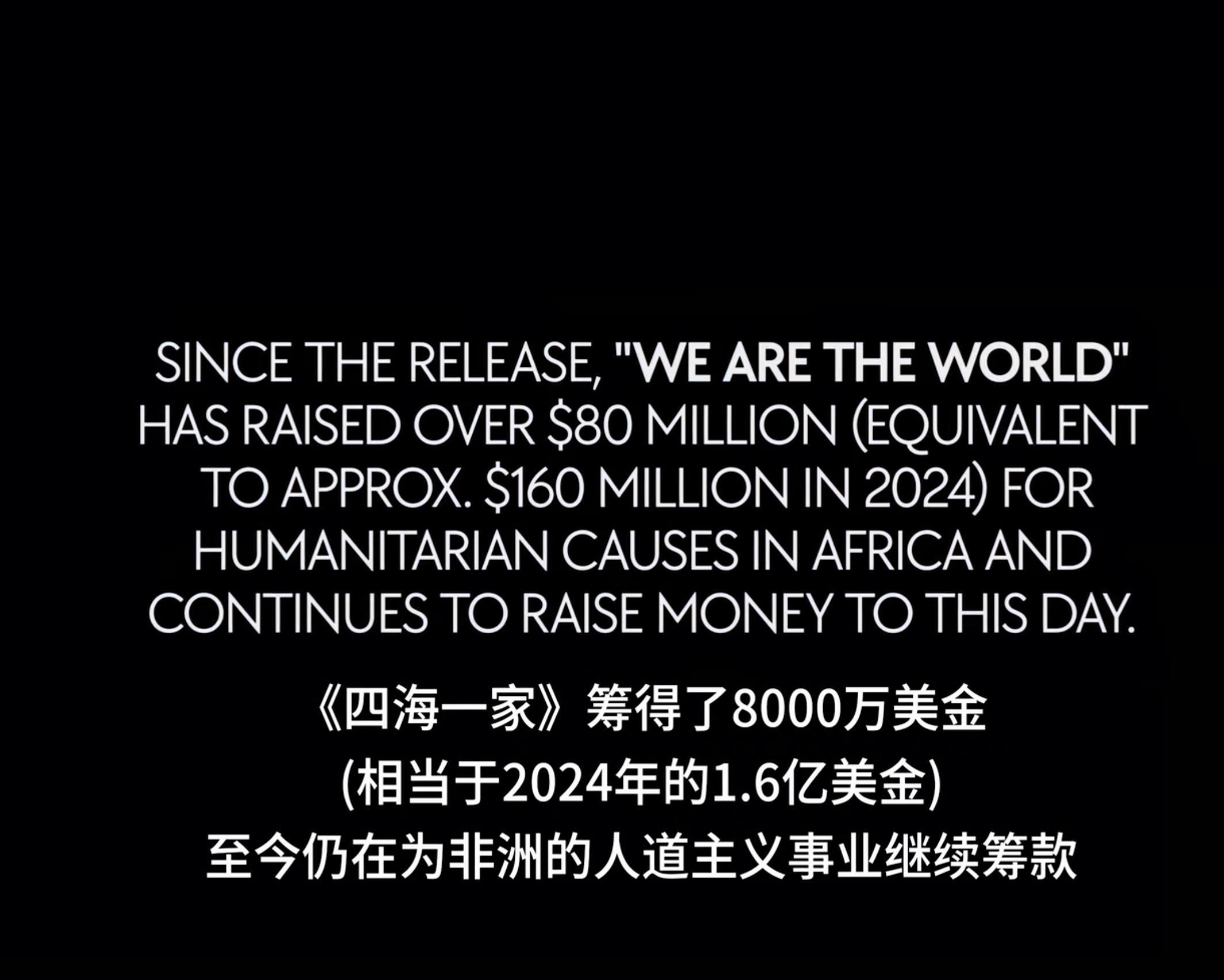 這張單曲最終銷量突破2000萬張,爲非洲饑荒募集了超過8000萬美元的善款。