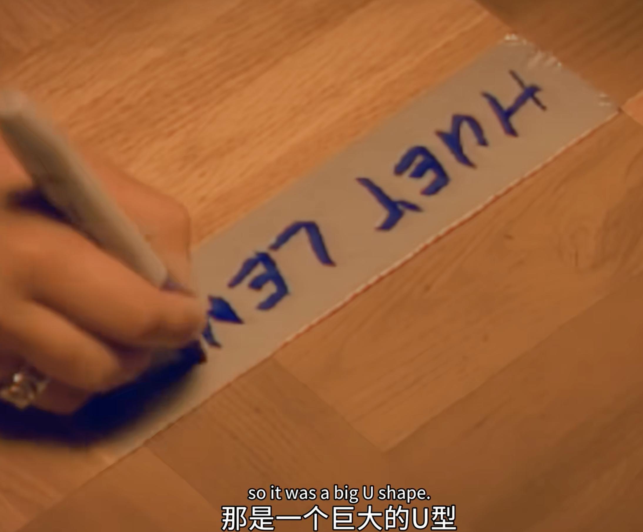 所有歌手的名字被貼在地板上,圍成一個巨大的“U”形。