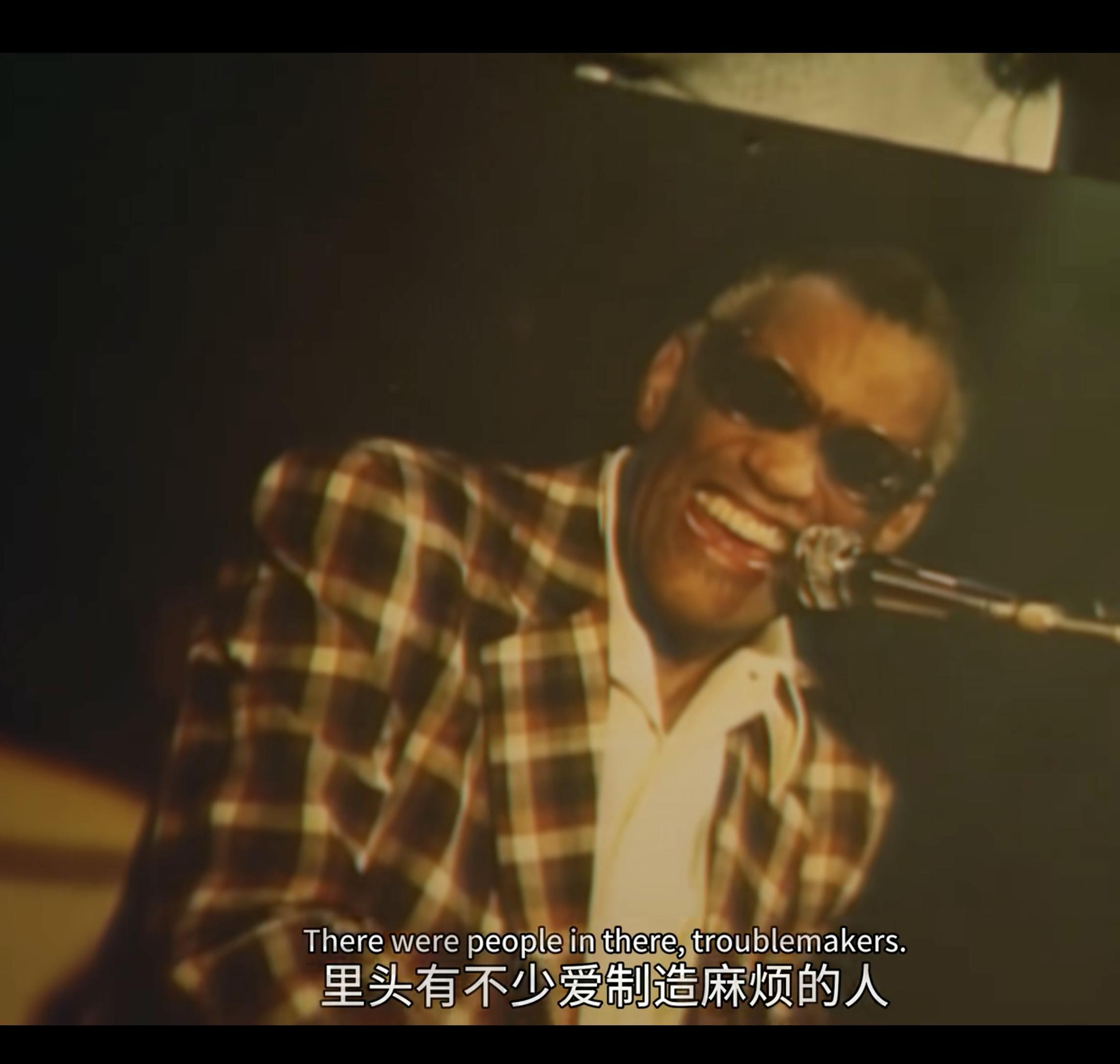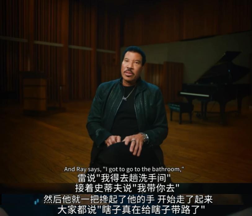 休息期間,盲人歌手史蒂夫·旺達主動領着同樣失明的歌手雷·查爾斯去洗手間。