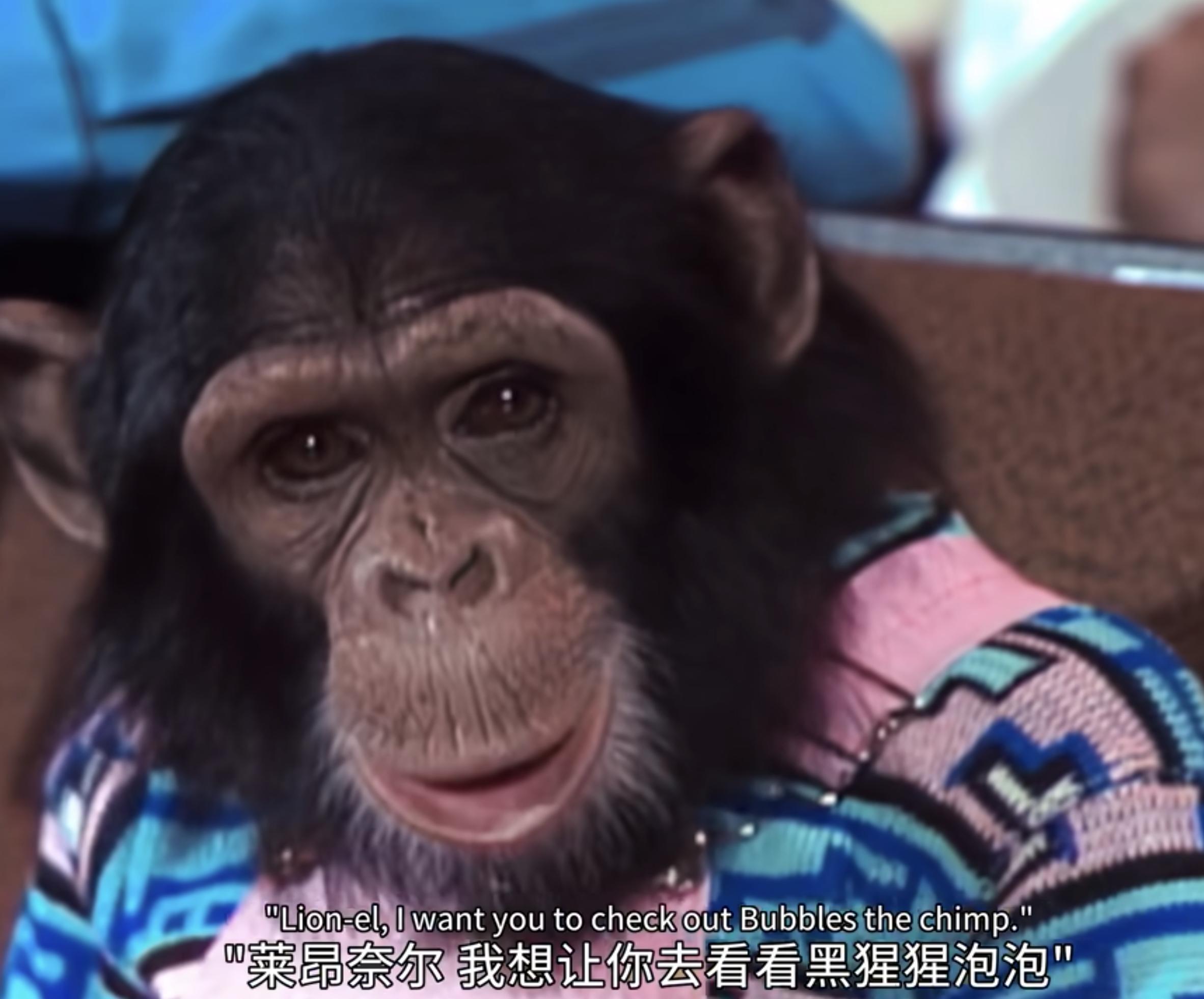 邁克爾家裏的八哥和狗吵個不停,他還熱情地讓萊昂納爾抱他的黑猩猩“泡泡”。