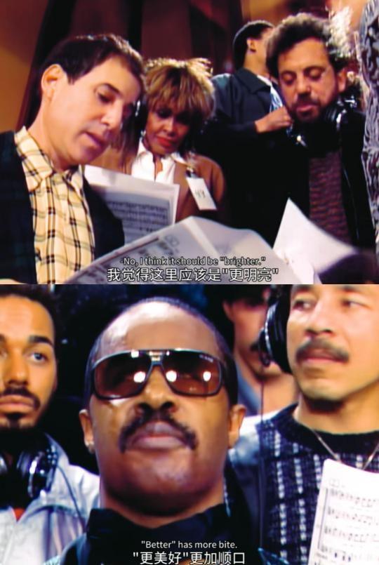 至此,萊昂納爾·裏奇、昆西·瓊斯、邁克爾·傑克遜、史蒂夫·旺達四位樂壇巨擘齊聚。