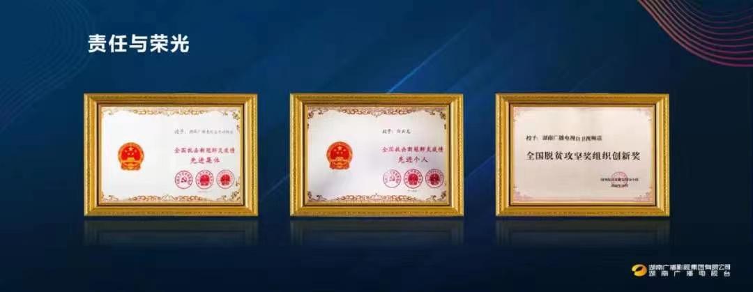 今年9月,湖南衛視和湖南廣播電視臺新聞中心記者白雲龍同時榮登中共中央、國務院、中央軍委授予的“全國抗擊新冠肺炎疫情先進集體”“全國抗擊新冠肺炎疫情先進個人”榜單;10月,湖南衛視又獲得“2020年全國脫貧攻堅獎·組織創新獎”。連獲三項國家級榮譽,我們深知這是對芒果人堅守社會責任和踐行使命擔當的鼓勵與鞭策。
