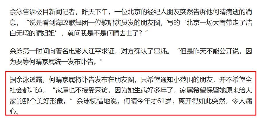 在何晴離世的消息剛被曝出來的時候,有媒體報道稱何晴之所以低調抗癌,有一個原因就是希望她留給大家的印象是美好的。