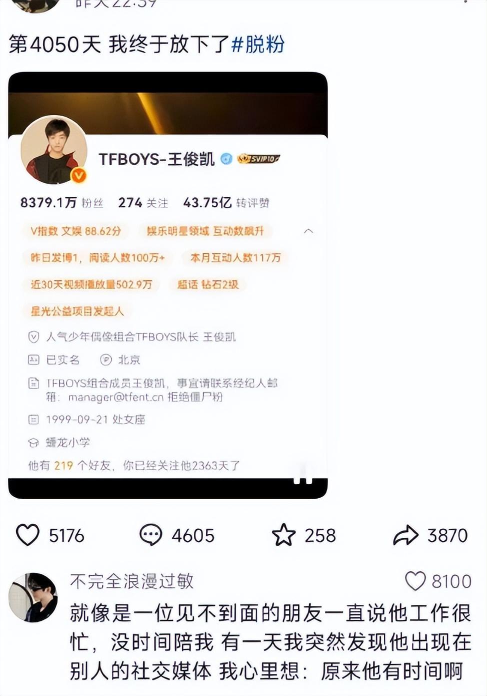 要知道,王俊凱作爲養成系明星,有着大量從出道就跟隨的老粉絲,這類粉絲的託舉心態尤其重。