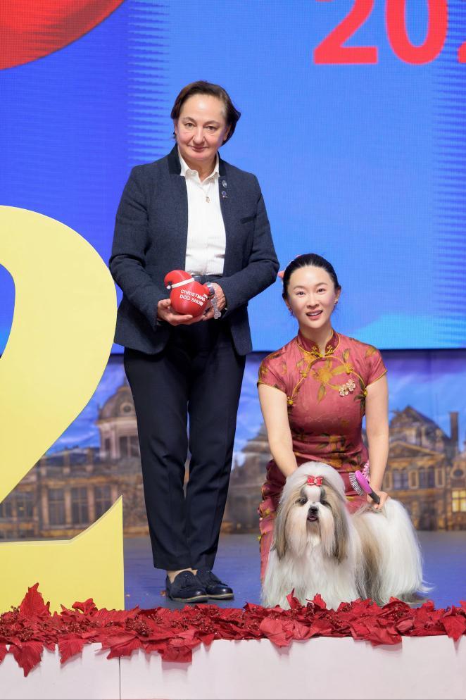 經過3天的比賽,霍思燕牽領的西施犬不僅獲得了該品類冠軍,還榮獲了全場總冠軍,創造了中國原生犬種在這一頂級國際賽事中的歷史性突破。