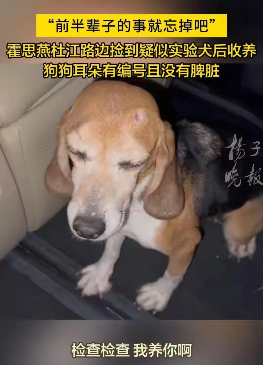值得一提的是,去年6月,霍思燕和杜江在路邊撿了一隻受傷的比格實驗犬。