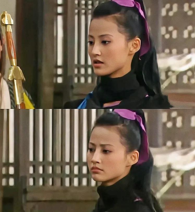 彼時的她青澀卻亮眼,一身俠氣裝扮,跟着 “雌雄雙煞” 行俠仗義。