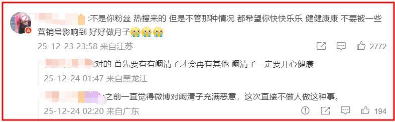 面對這些情況,網友們開始對闞清子擔憂起來,網友們紛紛在闞清子的超話和賬號評論區爲她留言祈福。