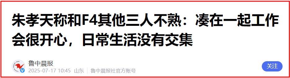 看到這一幕,不少網友直呼朱孝天這樣的態度,F4再度合體大概沒有希望了。