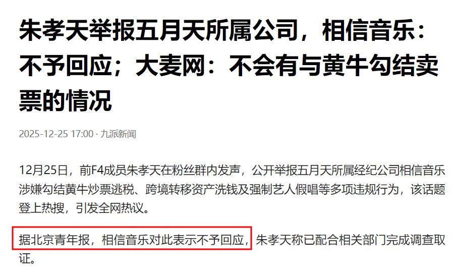 並說對於“相信音樂”勾結黃牛炒票逃稅一事,相關部門已經介入調查,而他已經前往相關部門配合調查了。