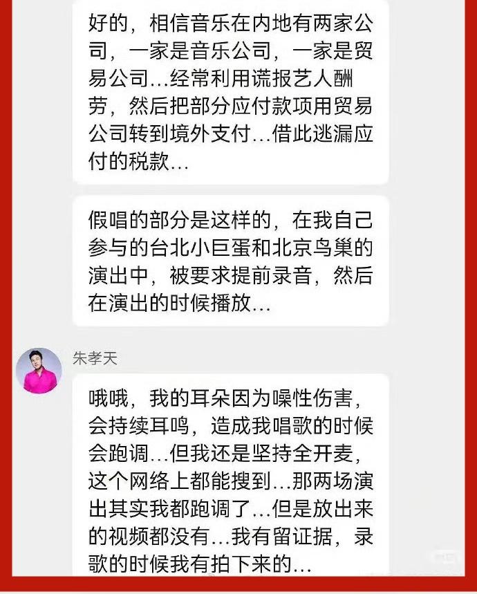 12月24日,朱孝天粉絲羣的一些內容再次被曝光。