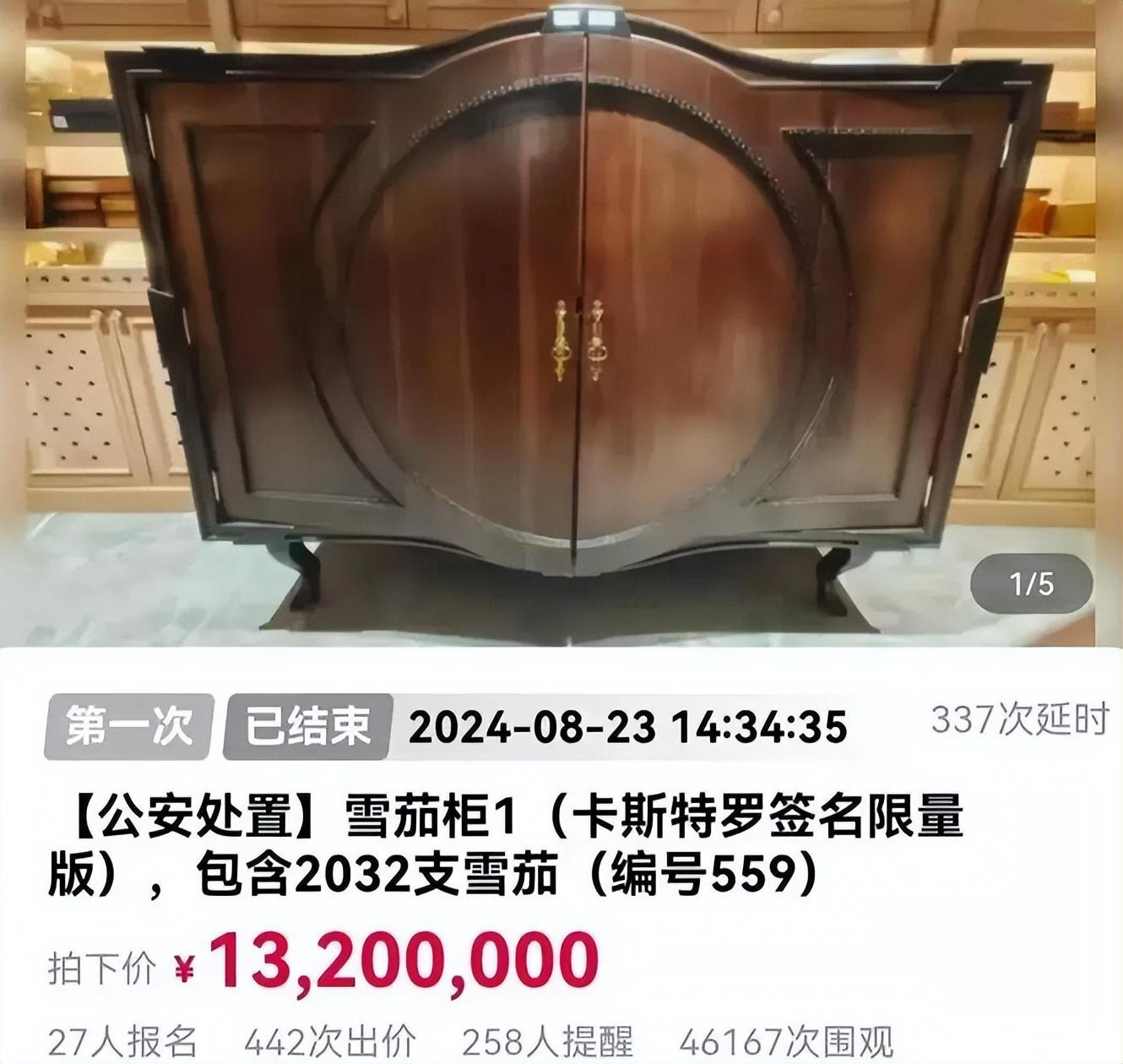 值得一提的是某個含有2032只雪茄的限量版雪茄櫃,成交價爲1320萬元。