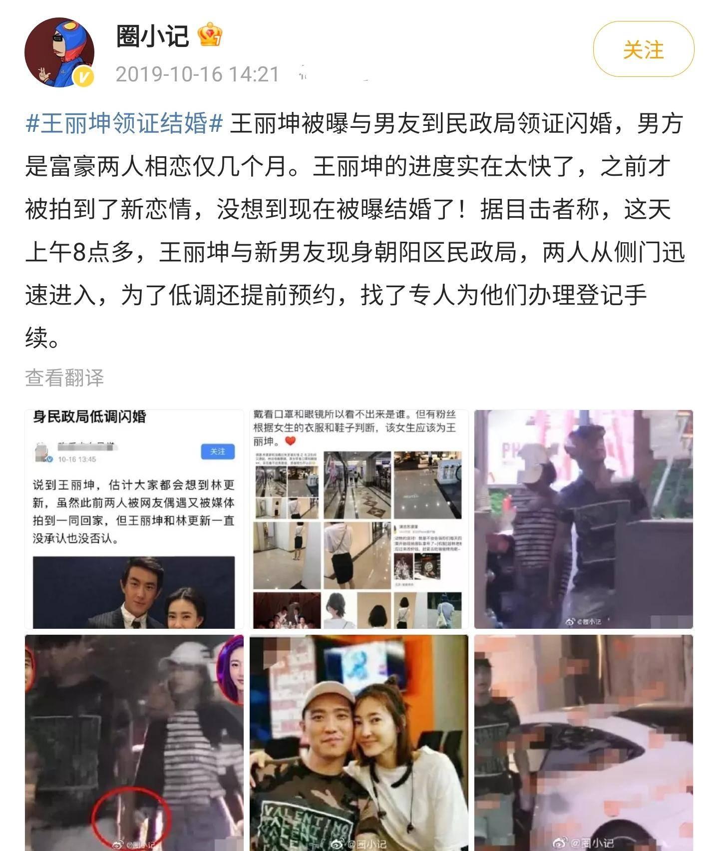 令人沒有想到的是這一年的10月,有狗仔爆料稱王麗坤和一名富商低調領證結婚了,狗仔還透露他們兩人從認識到結婚只有幾個月的時間。