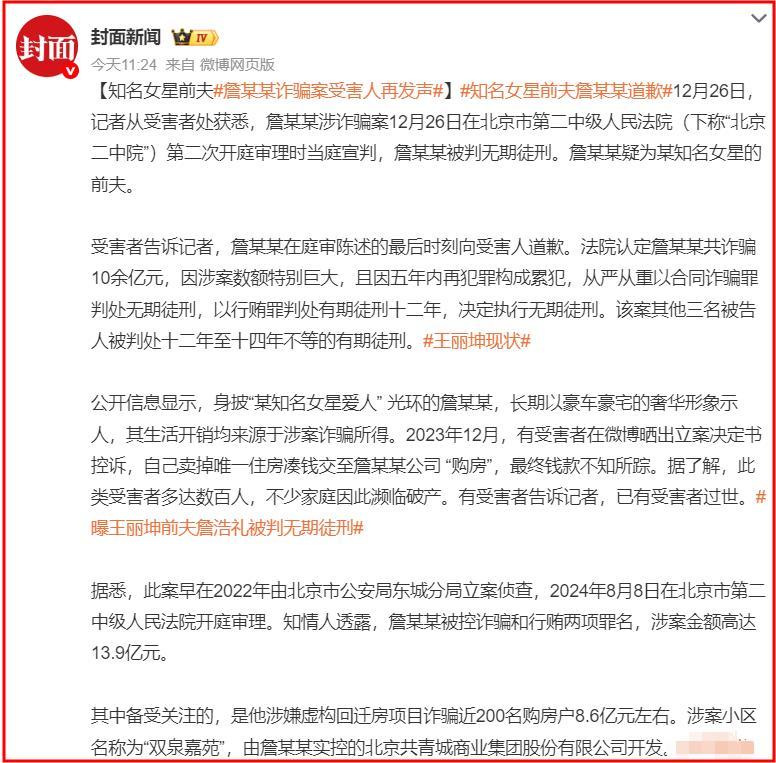 王麗坤前夫被判無期徒刑,詐騙10多億,奢靡生活曝光,令人咂舌!