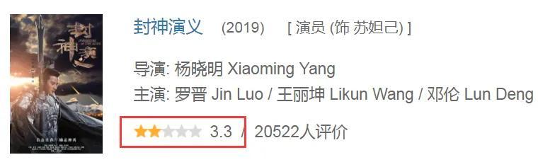 《封神演義》3.3分,《武動乾坤》4.5分,《幕後玩家》5.7分,《情遇曼哈頓》3.8分。