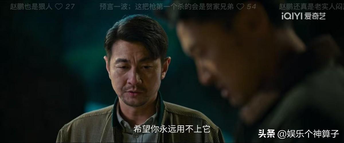 兩處臺詞細節暗示了趙鵬的結局。一是被迫和劉天也一起處理郭耀揚的屍體後,回到家的他難得耐心且和善地與兒子對話,提醒兒子早做打算,出國或讀研都可以。第二次是他悄悄給劉天也留了把槍,還面色凝重地提醒他希望用不上。這是不是暗示着他預感到自己的死期將近,要提前給兒子安排好一切?