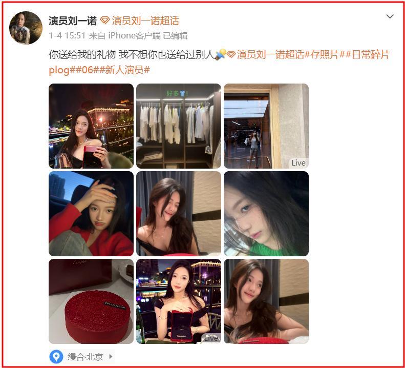 又加上劉一諾曬出了一款卡地亞手鐲,並配文“你送給我的禮物,我不想你也送給過別人”。