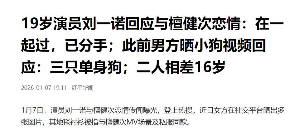 對於檀健次而言,這並不是一件好事。畢竟頂流男星就是靠粉絲捧出來的,粉絲要是知道他真的和一個比他小16歲的女孩談戀愛了,大概率很多粉絲會脫粉,他的商業價值會大打折扣,以後接戲都可能不好接了。