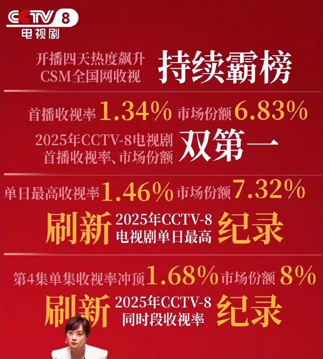 該劇開播僅37分鐘,實時收視就破3%,峯值達3.1515%,刷新央八25年首播紀錄。