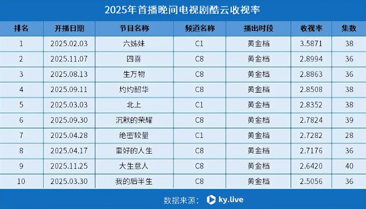 以上,就是2025年收視最高、最受觀衆喜歡的10部國產劇。