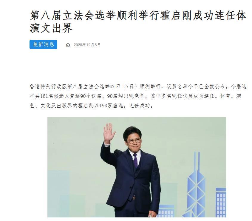 如今霍啓剛再次報名參選香港立法會議員,他於2025年12月8日再次成功當選,獲得連任。