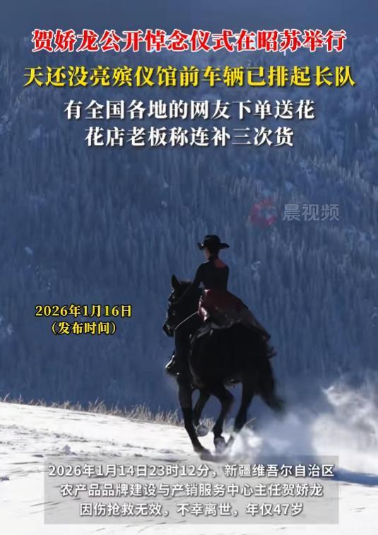 1月16日,賀嬌龍的追悼會在昭蘇縣殯儀館舉行。
