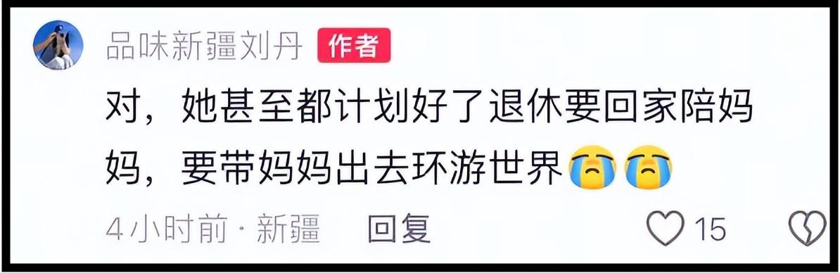 根據朋友劉丹透露的信息,賀嬌龍曾計劃退休後回家陪媽媽,要帶媽媽出去環遊世界。
