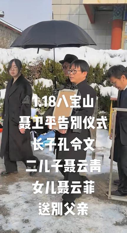 除了內部場景,聶衛平子女在告別儀式現場的的視頻也曝光了。